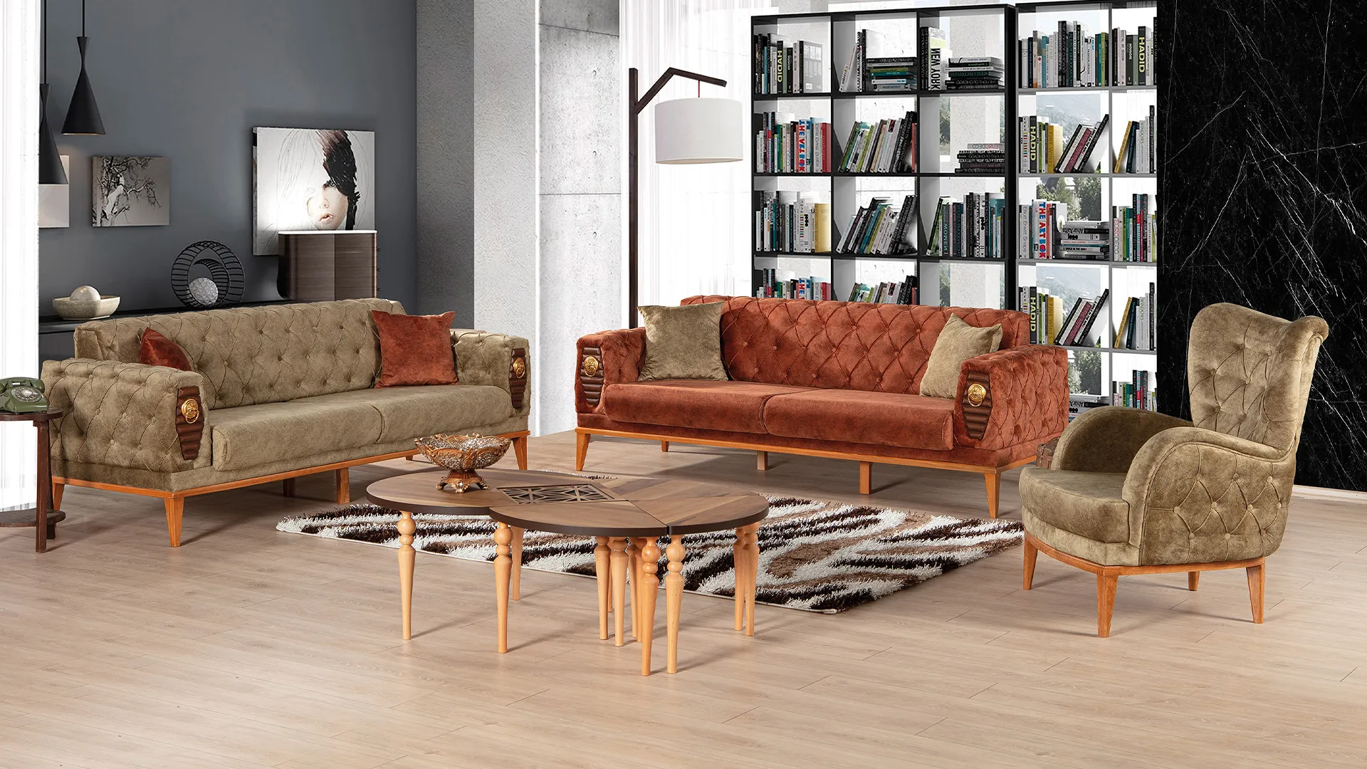 Modern tasarımıyla yaşam alanlarınıza estetik katan koltuklarımız, yüksek yoğunluklu süngerleri sayesinde uzun süreli konfor sunar. Kolay temizlenebilir kumaş yapısı ile hem şıklığı hem de pratikliği bir arada yaşarsınız.